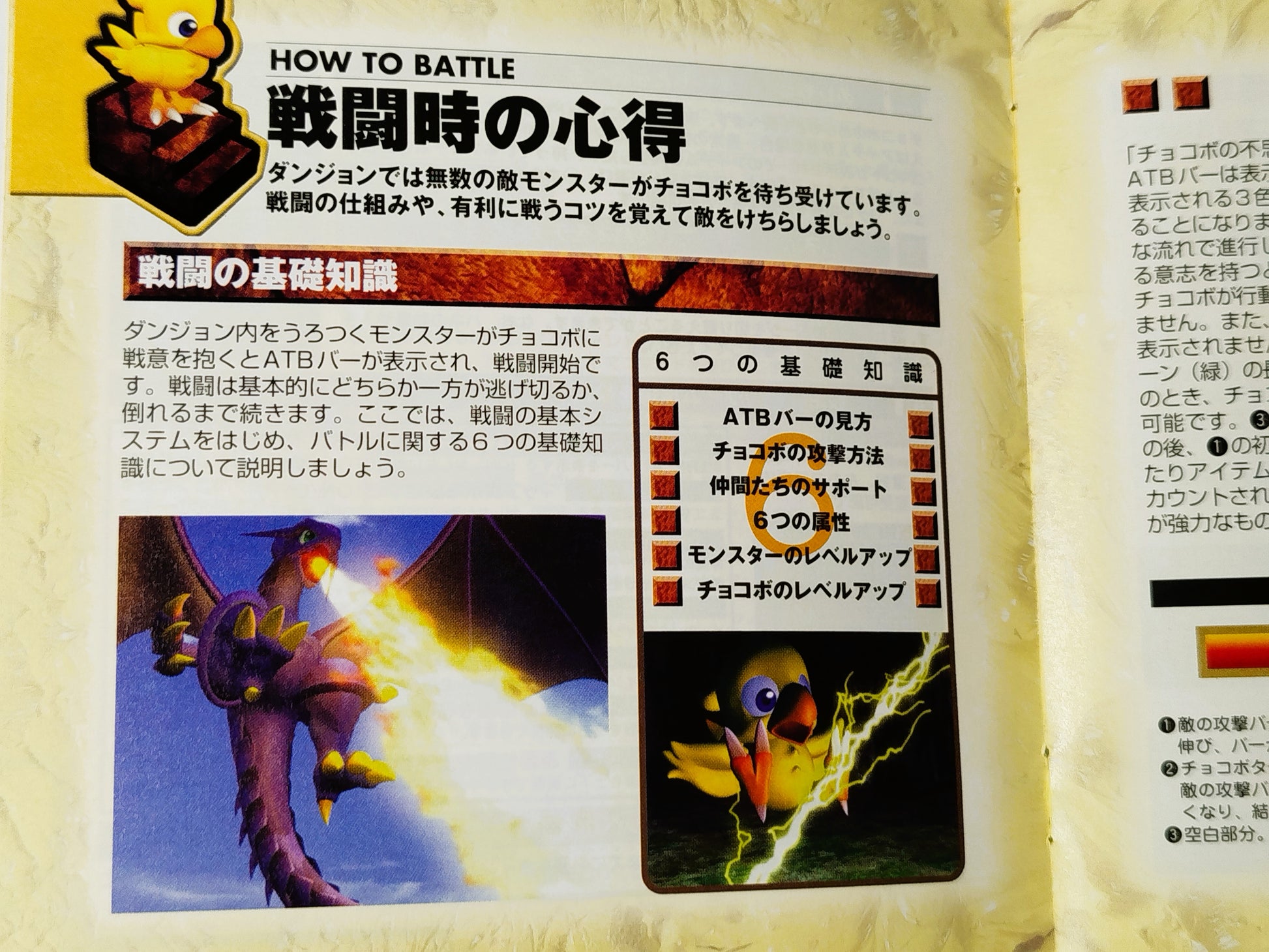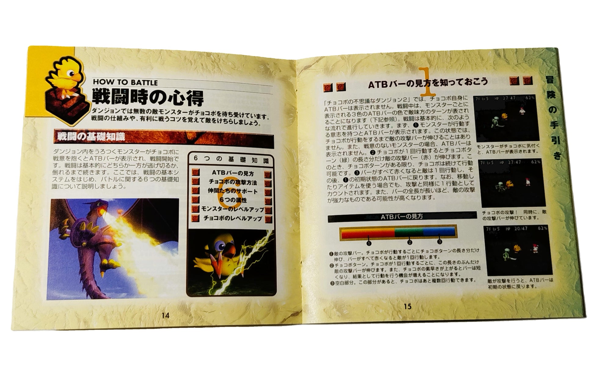 Equipaggiamento: Chocobo può raccogliere e potenziare oggetti (Claw e Saddle) trovati nel dungeon, che offrono bonus a statistiche e resistenze, e utilizzare Libri Magici per eseguire incantesimi.