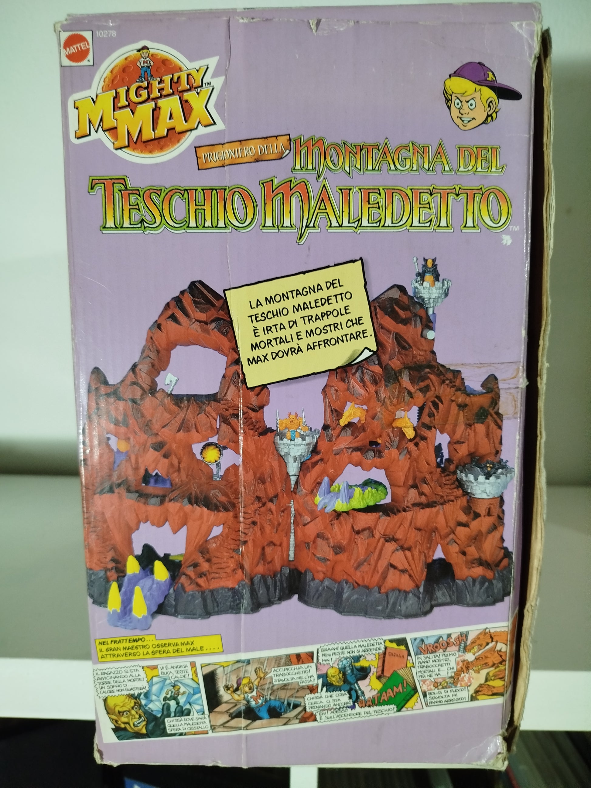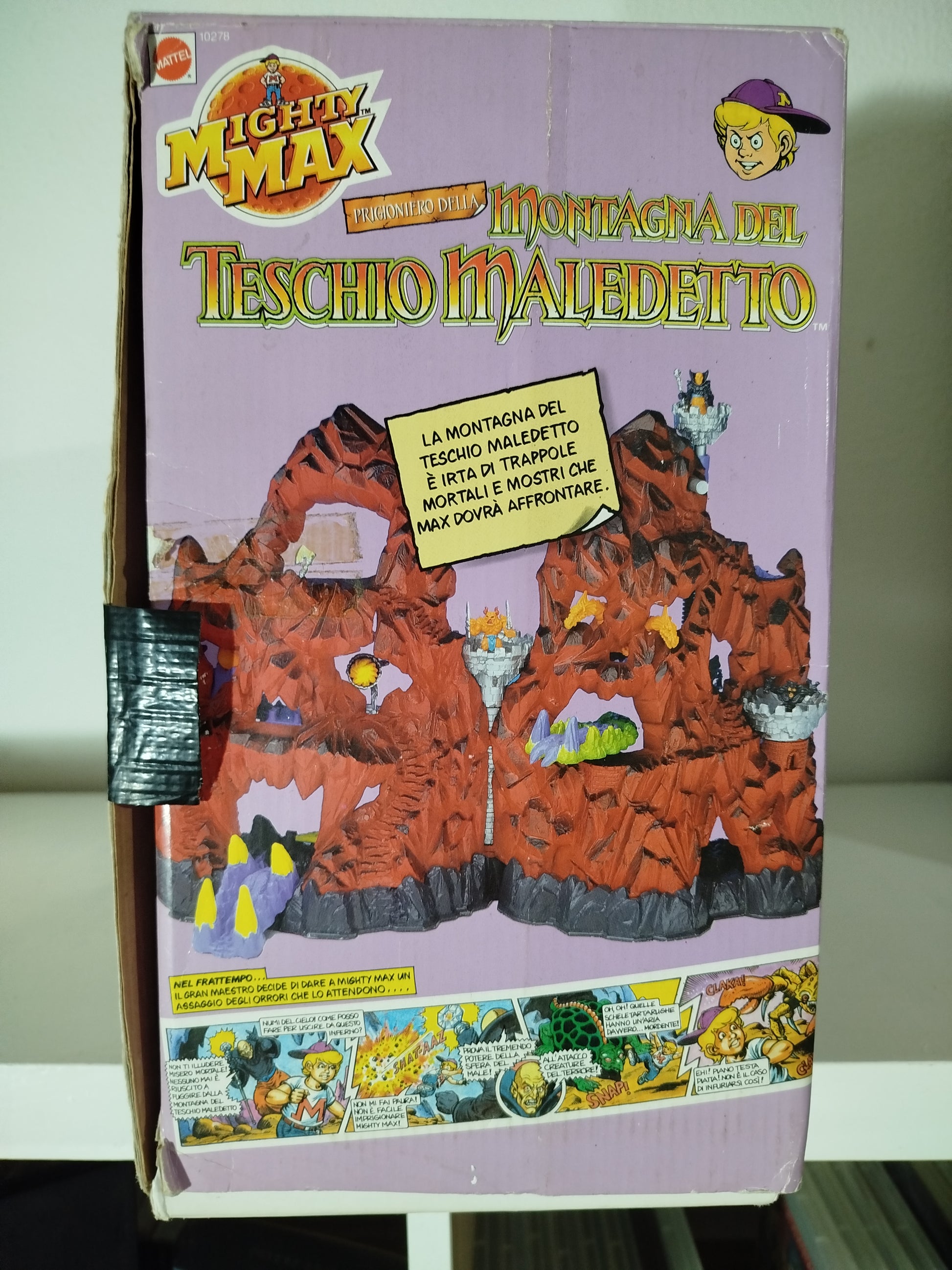 Mighty Max: Montagna del Teschio Maledetto è un giocattolo playset della serie Mighty Max, molto popolare negli anni '90. Questo playset rappresenta una montagna a forma di teschio e include vari personaggi e accessori. Il protagonista, Max, deve affrontare diverse sfide e nemici all'interno della montagna per sconfiggere il malvagio Skullmaster.